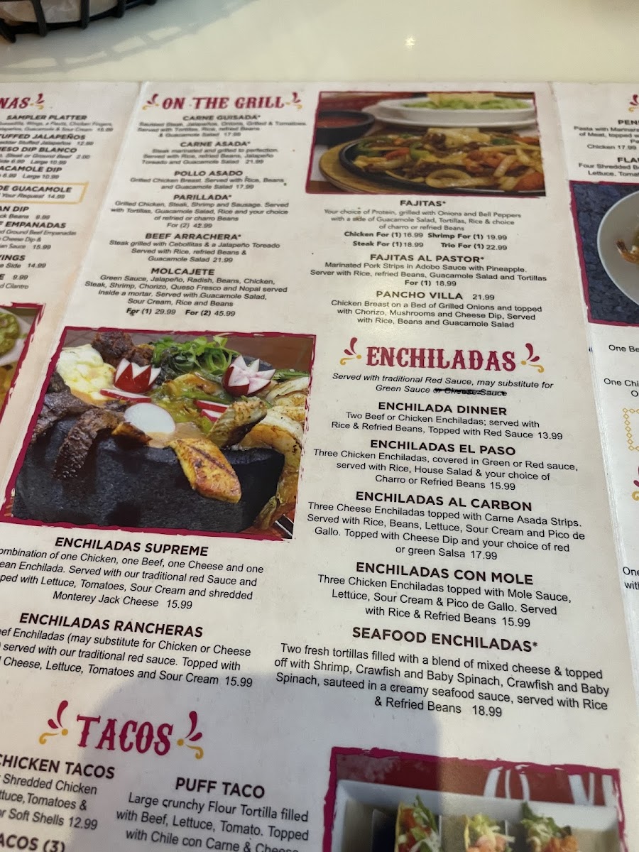 hrimp, scallops, and crabmeat enchiladas topped with a creamy sauce and melted cheese.